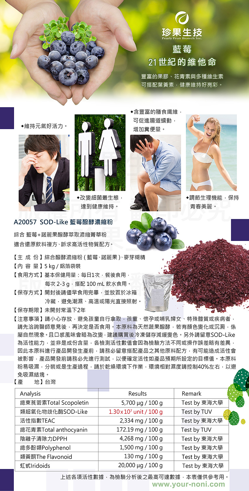 本原料一般消費者無法進行後續加工處理,僅供專業採購商參考,不開放給一般客戶購買,如有任何問題,請與本公司連絡,造成不便 敬請見諒。諾麗,SOD-Like,酵素