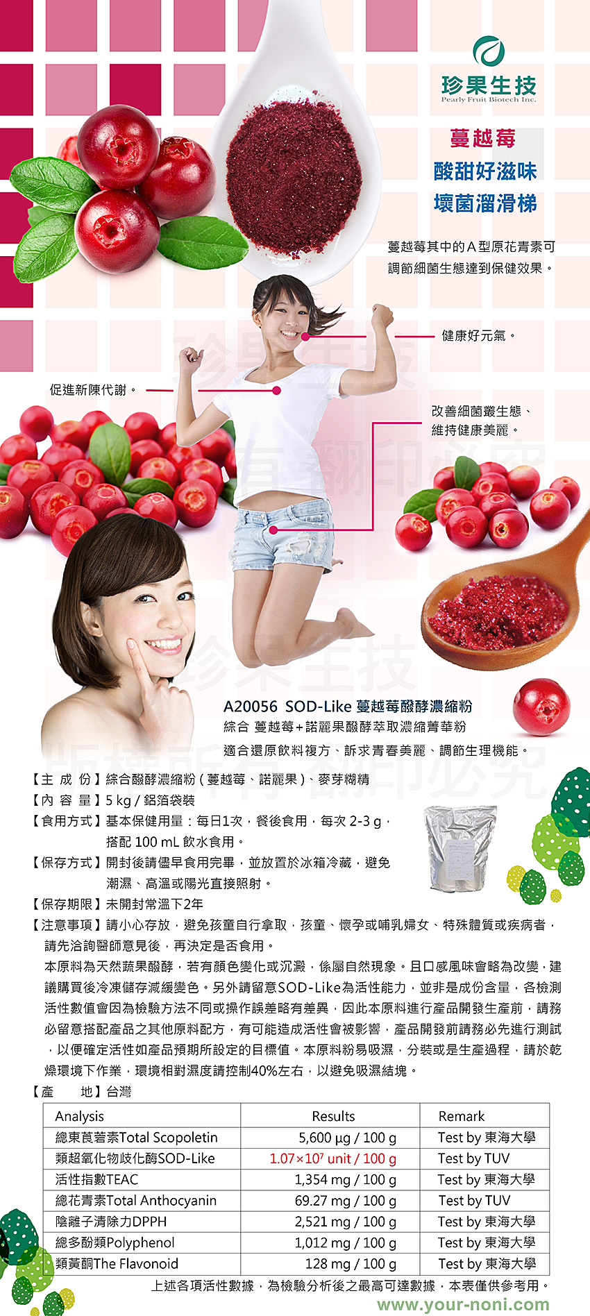 本原料一般消費者無法進行後續加工處理,僅供專業採購商參考,不開放給一般客戶購買,如有任何問題,請與本公司連絡,造成不便 敬請見諒。諾麗,SOD-Like,酵素