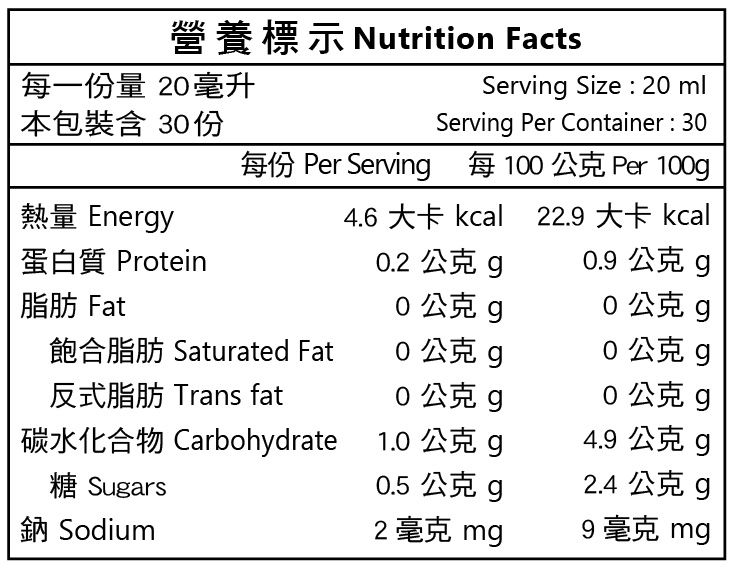 【成  份】100% 諾麗果漿 (醱酵果汁)