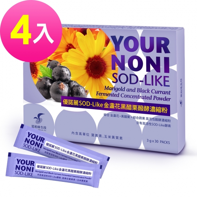【品名】送15包-思柏林優諾麗SOD-Like金盞花黑醋栗醱酵濃縮粉 4入