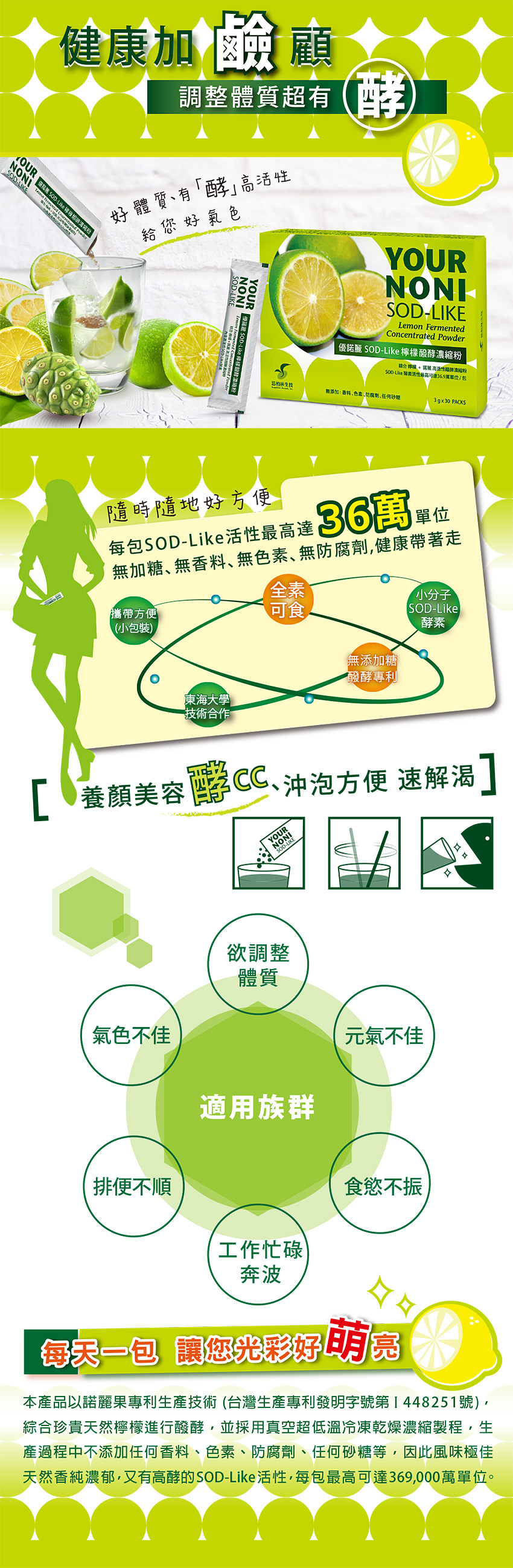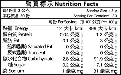 【成 份】蔬果植物醱酵濃縮粉 (檸檬、諾麗果、麥芽糊精)