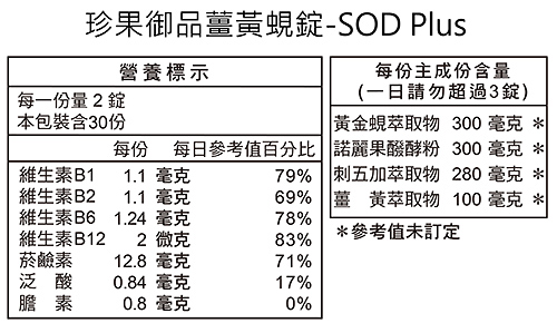 【品  名】珍果御品薑黃蜆錠-SOD Plus 6入