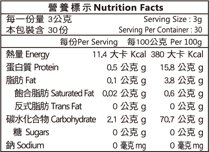 【容 量】 3公克 / 包 x 30包 / 外鋁箔袋